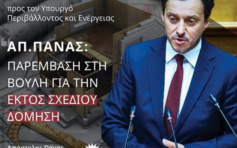 Απόστολος Πάνας: Παρέμβαση στη Βουλή για την εκτός σχεδίου δόμηση