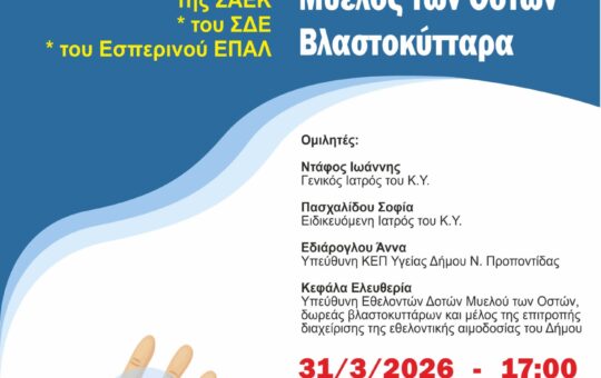 BREAKING ΤΟΠΙΚΑ Ενημερωτική Ομιλία για την Αιμοδοσία, τον μυελό των οστών και τη δωρεά βλαστοκυττάρων 24/03/2026