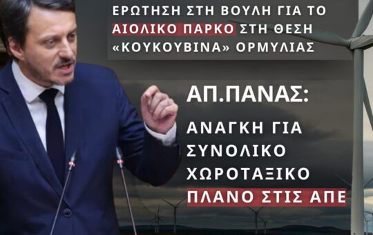 EDITOR PICK ΤΟΠΙΚΑ Ερώτηση Πάνα για τις ανεμογεννήτριες στην «Κουκουβίνα» Πολυγύρου – Ζητά διαφάνεια και κοινωνική συναίνεση 10/10/2025