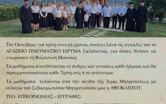 BREAKING ΤΟΠΙΚΑ Ξεκινά για τρίτη χρονιά η Σχολή Βυζαντινής Μουσικής στο «ΑΓΑΠΕΙΟ» Γαλάτιστας 29/09/2025