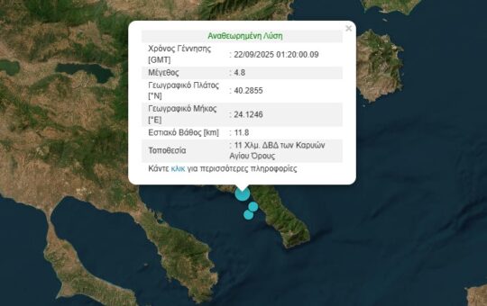 BREAKING ΤΟΠΙΚΑ Σεισμός 4,8 Ρίχτερ ταρακούνησε το Άγιο Όρος – Έγινε αισθητός και στη Θεσσαλονίκη 22/09/2025