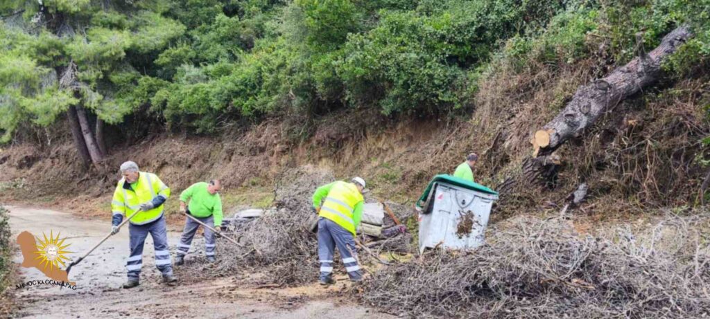 Την Τετάρτη, λόγω των έντονων βροχοπτώσεων, έγινε μεταφορά σχολικού εξοπλισμού προς ανακύκλωση σε σχολικές μονάδες στο Παλιούρι, ενώ απομακρύνθηκαν πεσμένα δέντρα στην περιοχή της Ελάνης. Παράλληλα πραγματοποιήθηκαν εργασίες συλλογής πράσινων υπολειμμάτων και ογκωδών αντικειμένων σε Άθυτος, Νέα Φώκαια και στην περιοχή Σάνη.