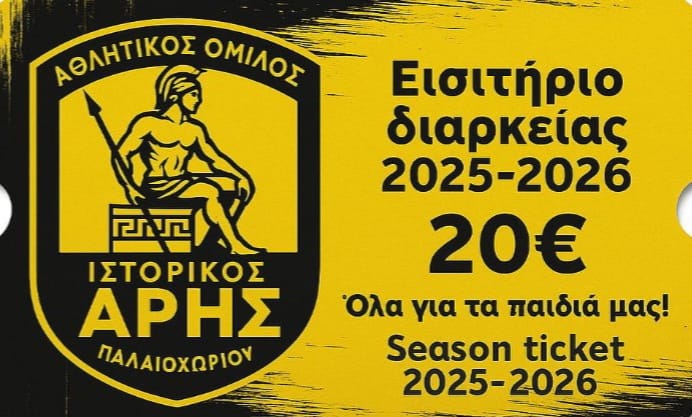 Εισιτήρια διαρκείας από τον Ιστορικό Άρη Παλαιοχωρίου