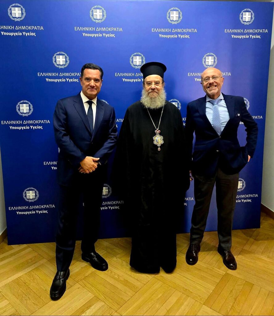 Τη Δευτέρα 24 Νοεμβρίου 2025, ο Σεβασμιώτατος Μητροπολίτης μας κ.κ. Θεόκλητος, συνοδευόμενος από τον Πρωτοσύγκελλο της Ιεράς Μητροπόλεως, Πανοσιολ. Αρχιμ. Δωρόθεο Ζέρβα, πραγματοποίησε επίσκεψη στον Υπουργό Υγείας κ. Άδωνι Γεωργιάδη στην Αθήνα. Στη συνάντηση συμμετείχαν επίσης ο Μακεδόνας Υφυπουργός Υγείας κ. Δημήτριος Βαρτζόπουλος και η Αντιπεριφερειάρχης Χαλκιδικής κα Αικατερίνη Ζωγράφου.