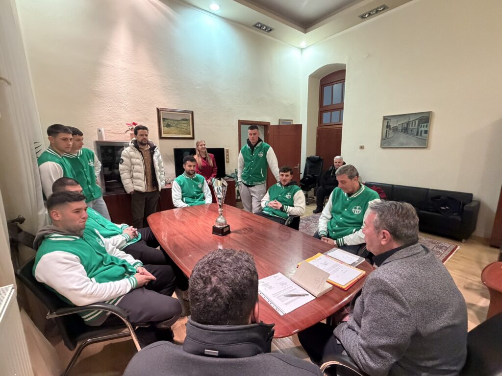 Με ιδιαίτερη τιμή και χαρά υποδέχθηκε ο Γιώργος Εμμανουήλ, Δήμαρχος Πολυγύρου, τους αθλητές του Αθλητικού Ομίλου Πολυγύρου (ΑΟΠ), Κυπελλούχους Χαλκιδικής, στο γραφείο του.