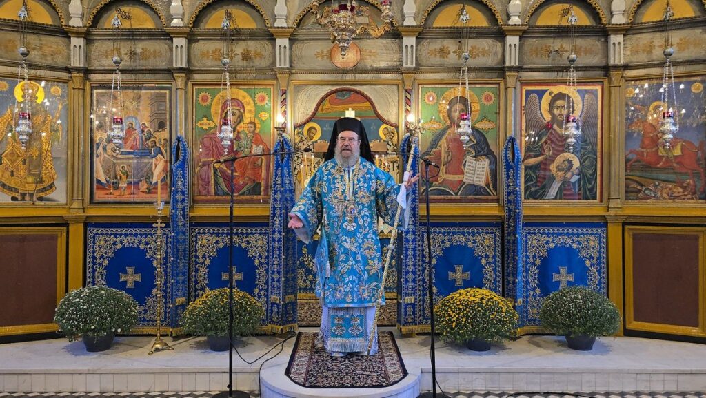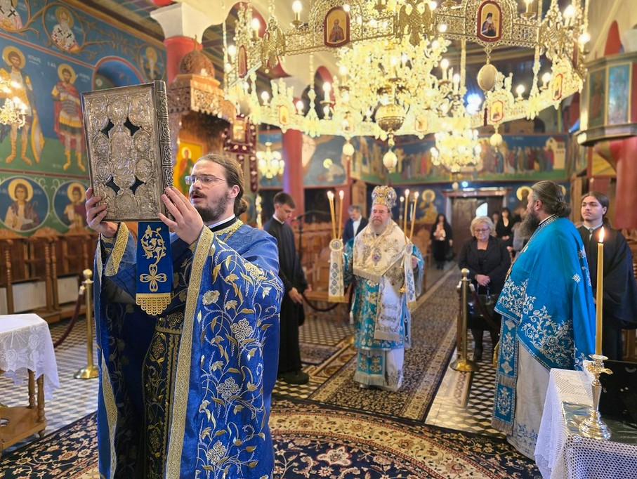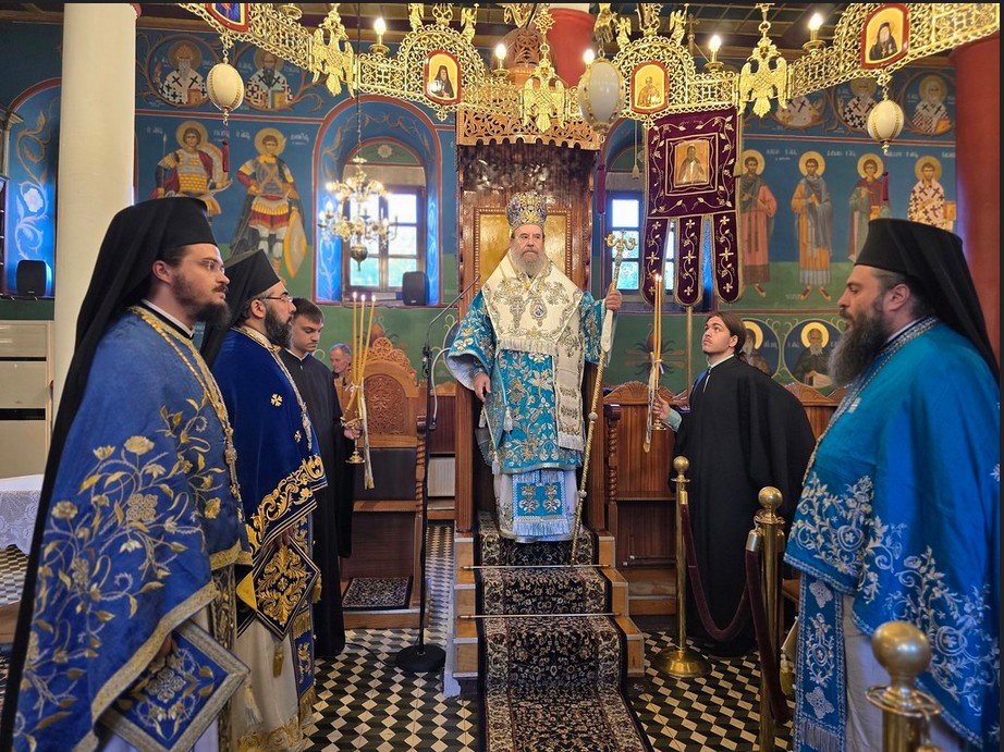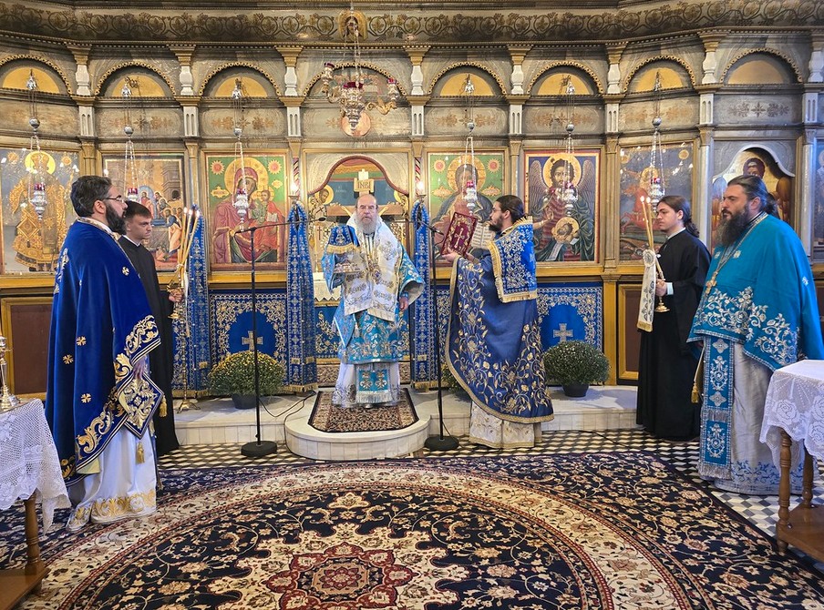 Έτσι στις Κυριακάτικες Ακολουθίες του Όρθρου και της Θείας Λειτουργίας προέστη ο Σεβασμιώτατος Μητροπολίτης Ιερισσού, Αγίου Όρους και Αρδαμερίου κ. Θεόκλητος, πλαισιούμενος από τους Παν. Αρχιμ. π. Δημήτριο Τζιαφά, Ιεροκήρυκα της Ιεράς Μητροπόλεως Θεσσαλονίκης, π. Δωρόθεο Ζέρβα, Πρωτοσύγκελλο της Ι.Μ. Ιερισσού και π. Νικόδημο Κωτινούδη, Εφημέριο της Ενορίας και συνεργάτη του στα Γραφεία της Ι.Μητροπόλεως.