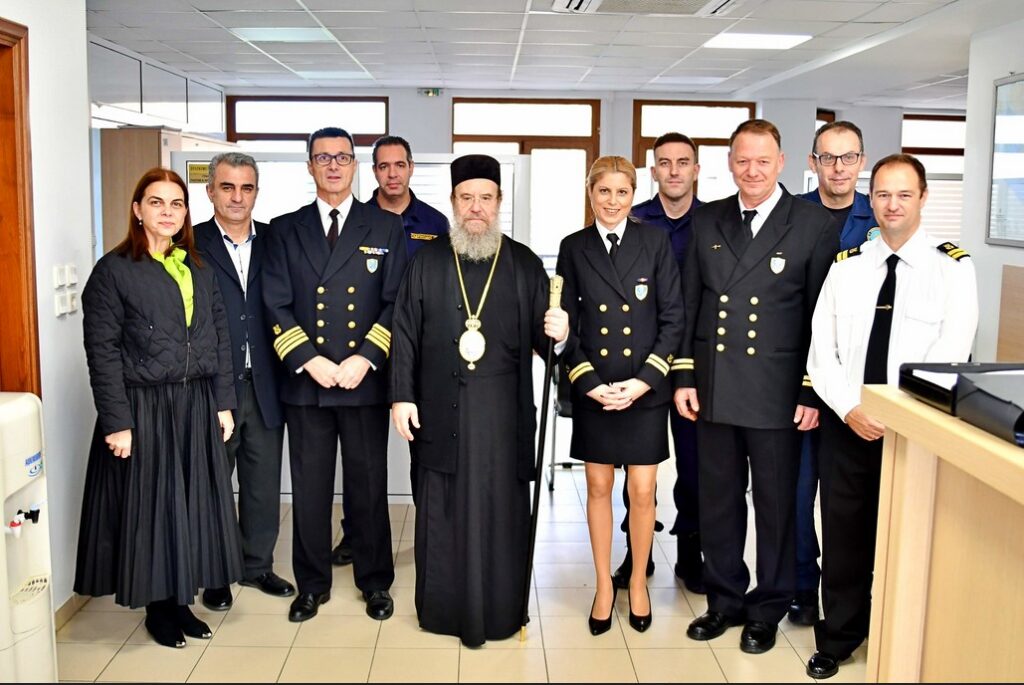 Μετά το πέρας της Θείας Λειτουργίας ο Σεβασμιώτατος με τη Συνοδεία του, προσκληθείς από τον Λιμενάρχη Ιερισσού κ. Ευθύμιο Πέτρου, επεσκέφθη κατά χρέος το Λιμεναρχείο της θαλασσόβρεχτης έδρας του και ευχήθη τα δέοντα στους εκεί υπηρετούντες την Πατρίδα, προσφέροντάς τους ως ενθύμιο της Ημέρας το Ημερολόγιο της Ιεράς Μητροπόλεως του 2026, που είναι αφιερωμένο στην ιστορική Ενορία Κοιμήσεως της Θεοτόκου Αρδαμερίου.