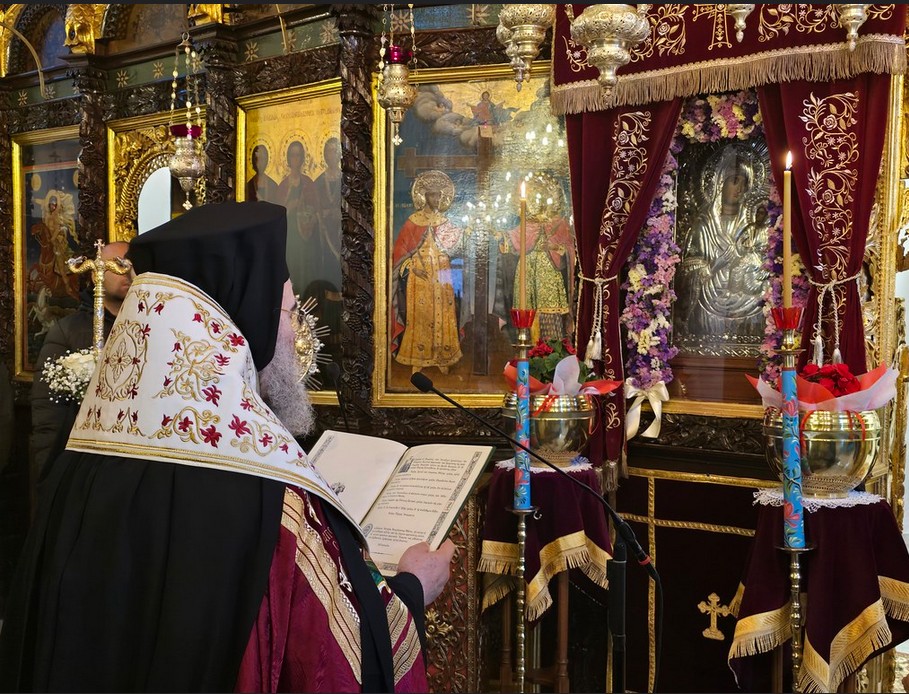 Ο Σεβασμιώτατος στο κήρυγμά του ανεφέρθη, αφού έπλεξε το εγκώμιο της Κυρίας Θεοτόκου, σε δύο σημεία -επιλογές της Ορθοδόξου Εκκλησίας και Λατρείας, αναφορικά με αυτό το υπέροχο μεγαλούργημα του Ακαθίστου Ύμνου.