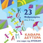 Σε ένα μεγάλο κούτσουρο ξύλου, ο Άγιος Γεώργιος παίρνει μορφή τρισδιάστατη: το άλογο, ο δράκος, η κίνηση, οι δυσκολίες της χάραξης κάτω από το σώμα του αλόγου, όλα απαιτούν επιμονή και σπάνια τεχνική.