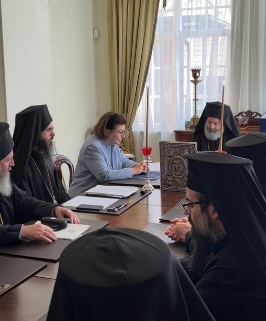Νωρίτερα, η Επαρχιακή Σύνοδος της Ιεράς Αρχιεπισκοπής Αυστραλίας υποδέχθηκε σε πανηγυρική συνεδρία της την Υπουργό Πολιτισμού Λίνα Μενδώνη. Ο Αρχιεπίσκοπος κ.κ. Μακάριος προσφωνώντας την Υπουργό ανέφερε: «Πάντοτε αισθανόμαστε την εγγύτητα, τη μέριμνα και το ενδιαφέρον σας για τον Ελληνισμόν της Αυστραλίας. Παρακαλούμε θερμώς να μεταφέρετε τις εγκάρδιες ευχές και προσευχές μας και στον Εξοχότατο Πρωθυπουργό της Χώρας Κυριάκο Μητσοτάκη, ο οποίος δείχνει ένα ξεχωριστό και πολυεπίπεδο ενδιαφέρον τόσο θεσμικώς ως εκ της θέσεως του, όσο και προσωπικώς και τούτο είναι κάτι που μας συγκινεί και μας χαροποιεί βαθύτατα».