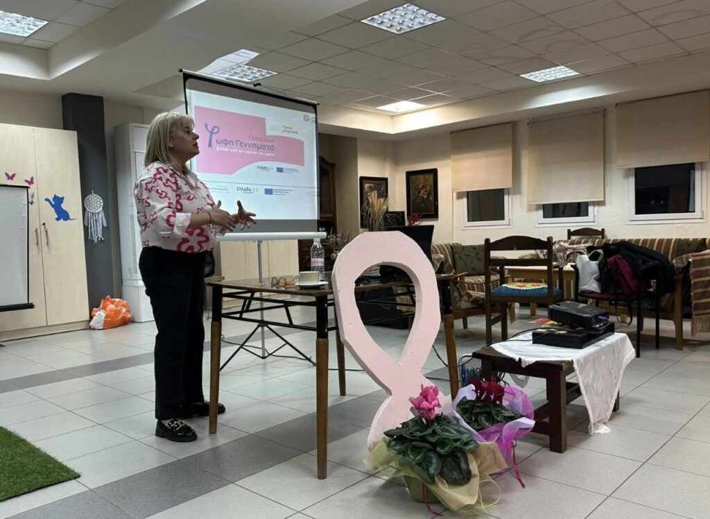 Η μαία του Κέντρου Υγείας, Ζέφη Μήτου, ενημέρωσε τους πολίτες για το εθνικό πρόγραμμα πρόληψης «Σπύρος Δοξιάδης», που αφορά την πρόληψη και έγκαιρη διάγνωση του καρκίνου του μαστού.