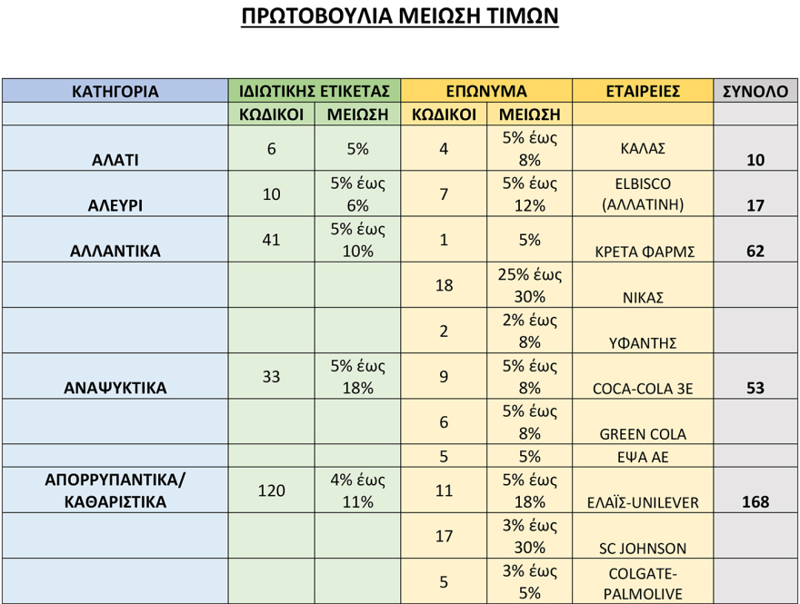 Σε αυτό το πλαίσιο, σήμερα ανακοινώνεται από τις αλυσίδες του λιανεμπορίου και τους προμηθευτές μεσοσταθμική μείωση 8% σε πάνω από 2.000 κωδικούς σημαντικών προϊόντων.