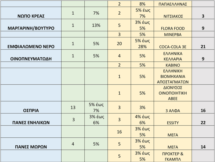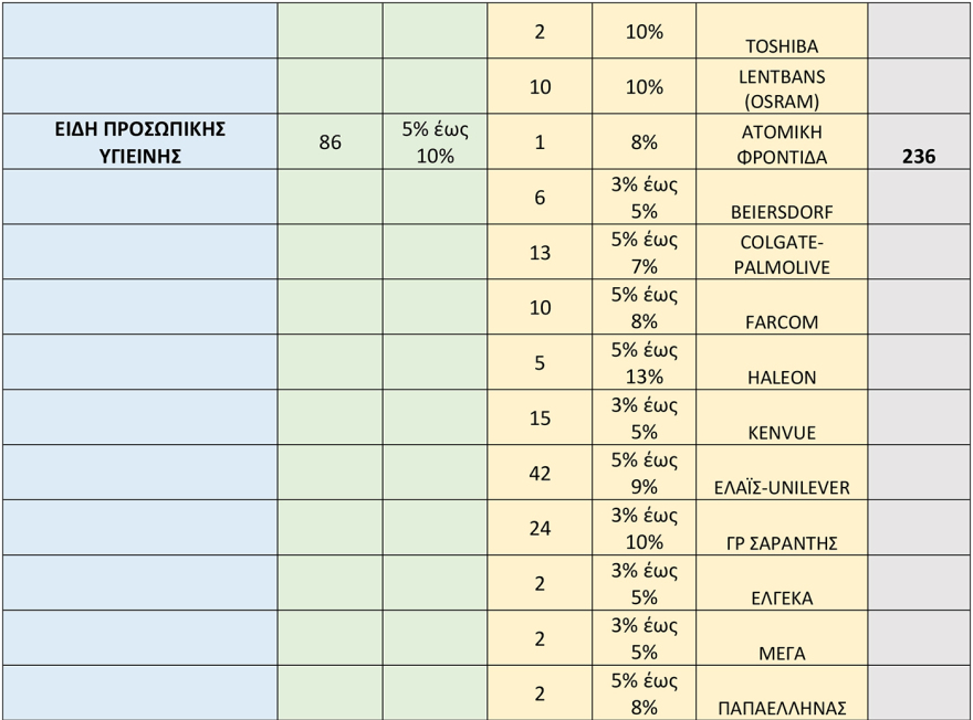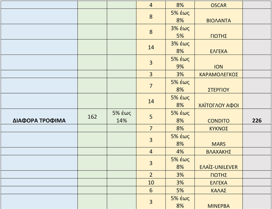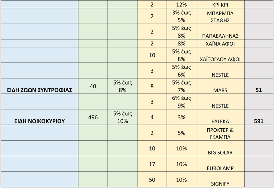 Πρόκειται για 1074 κωδικούς που αφορούν τρόφιμα και 1.106 κωδικούς από άλλες κατηγορίες προϊόντων