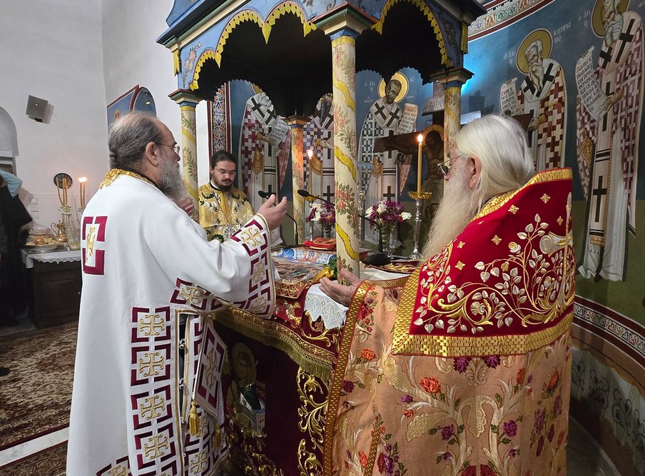 Τον Σεβασμιώτατο πλαισίωσαν, πέραν του Εφημερίου του Ιερού Ναού και οι Παν. Αρχιμ. π. Νήφων Καζάνας και π. Νικόδημος Κωτινούδης.