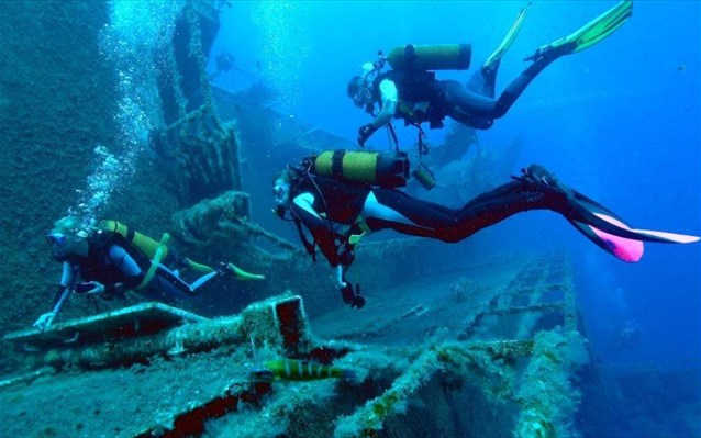 Ξεναγοί, συνοδοί τουριστών και τουρίστες με φιάλες οξυγόνου σε υποθαλάσσιο αρχαιολογικό χώρο. Οι επισκέψεις σε ναυάγια είναι κάτι που δεν συνηθίζεται ακόμη στην Ελλάδα, αλλά τα υποβρύχια Μουσεία ετοιμάζονται.