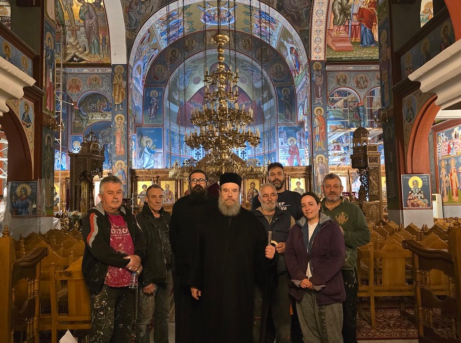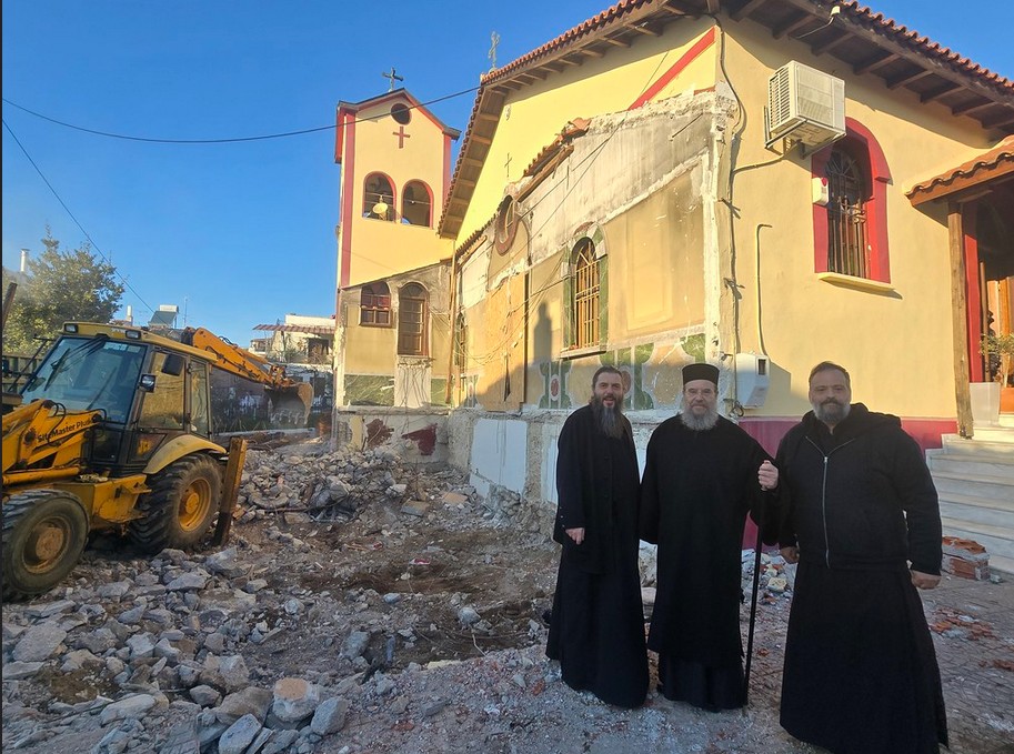 Την Τρίτη, 10η Μαρτίου 2026, το απόγευμα, ο Σεβασμιώτατος Μητροπολίτης Ιερισσού κ. ΘΕΟΚΛΗΤΟΣ, έχοντας μαζί του τους Παν. Αρχιμ. π. Δωρόθεο Ζέρβα, Πρωτοσύγκελλο και Ιεροκήρυκά του και π. Νικόδημο Κωτινούδη, συνεργάτη του στα εν Αρναία Γραφεία της Ιεράς Μητροπόλεως, επεσκέφθη αρχικώς και επιθεώρησε τις εργασίες αναπλάσεως του εξωνάρθηκος και του κάτωθεν αυτού χώρου της Ενορίας Αγίων Κωνσταντίνου και Ελένης Ουρανουπόλεως. Να σημειωθεί ότι ο παλαιός ξύλινος εξωνάρθηκας, η κάτωθεν αυτού υποδομή και η κλίμακα που οδηγούσε στον Ιερό Ναό κατεδαφίστηκαν και, συν Θεώ, από την επόμενη εβδομάδα θα εκκινήσουν οι εργασίες ανεγέρσεως του τσιμέντινου κελύφους της νέας προσθήκης, που σκοπό έχει την αναβάθμιση της αισθητικής όψεως του Ιερού Ναού και της λειτουργικότητος του νέου υπό κατασκευήν κτίσματος της Ενορίας. Σκοπός του Προϊσταμένου του Ιερού Ναού Αιδ. π. Γεωργίου Κυριάκου και του Εκκλησιαστικού του Συμβουλίου, με ευλογία και υπόδειξη του Ποιμενάρχου μας, είναι ότι πέραν του νέου εξωνάρθηκος και κάτωθεν αυτού θα δημιουργηθεί άνετος χώρος διδασκαλίας και κατηχήσεως των νέων βλαστών της Ενορίας, Εξομολογητήριο και κοινόχρηστοι χώροι για την εξυπηρέτηση του Χριστεπωνύμου Πληρώματος. Προς το παρόν οι εργασίες βαίνουν καλώς.