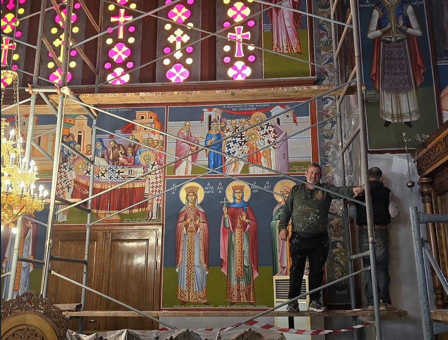 Μετά την Ουρανούπολη, ικανοποιημένος ο Επίσκοπός μας με τη Συνοδεία του, επεσκέφθη τον Ιερό Ναό Αγίου Νικολάου Ιερισσού για να επιβλέψει σε ποιο στάδιο βρίσκεται η εξέλιξη της ιστορήσεως του Ιερού Ναού, που βαίνει προς την ολοκλήρωσή της. Ακάματος εργάτης ο Αιδ. Πρωτ. π. Ιωάννης Κοτσέα και οι Συνεργάτες του και φυσικά ο Αγιογραφικός Οίκος των “ΒΛΑΧΩΝ” εκ Νιγρίτης Σερρών, με επικεφαλής τον κ. Εμμανουήλ Βλάχο και τη πενταμελή ομάδα του, που όντως αναδεικνύουν με τον παραδοσιακό βυζαντινό τρόπο και μέθοδο τον περικαλλή αυτόν Ναό. Πέραν της Αγιογραφήσεως συντελούνται εργασίες στην κεραμοσκεπή του τρουλλαίου αυτού Ναού προς αποκατάσταση των ζημιών που ο χρόνος και η αρμύρα της θάλασσας έχουν επιφέρει στον φέροντα οργανισμό του Παλλαδίου αυτού.