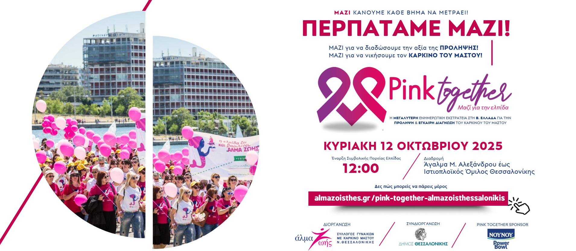 Η συμμετοχή είναι δυνατή και διαδικτυακά, ώστε όποιοι βρίσκονται σε οποιοδήποτε μέρος να ενώσουν τη φωνή τους με το «Pink Together». Περισσότερες πληροφορίες για συμμετοχή εδώ: https://almazoisthes.gr/pink-together-almazoisthessalonikis/