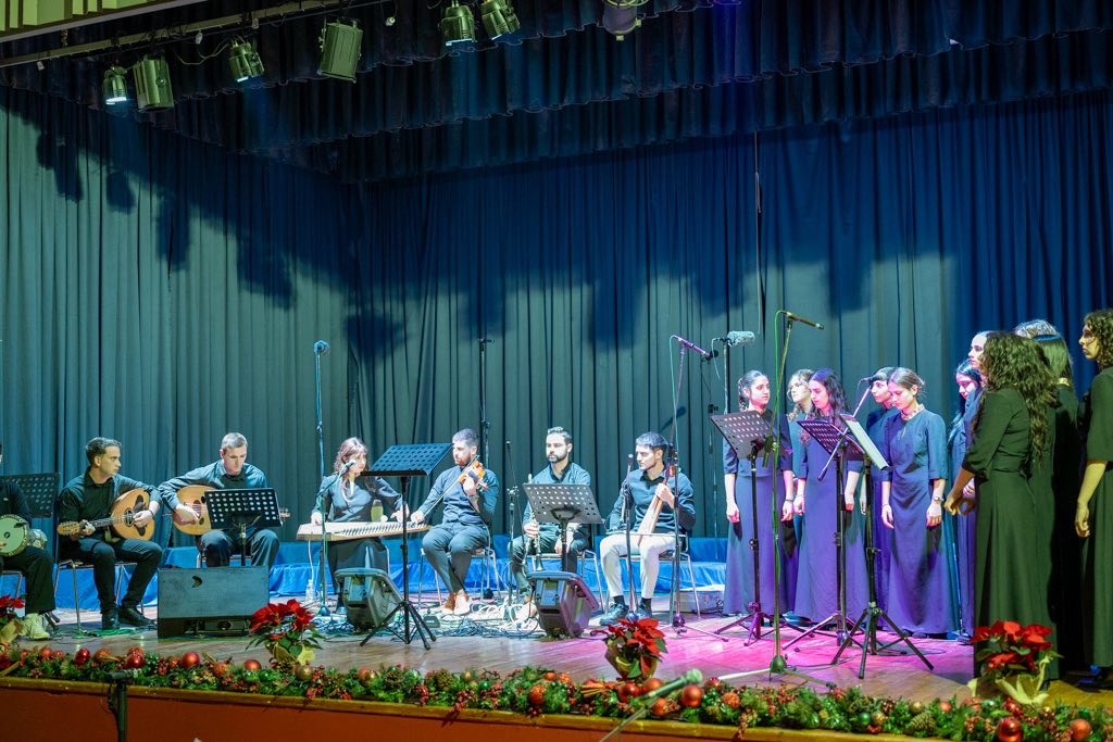 Το κοινό ταξίδεψε μουσικά καθώς ερμηνεύτηκαν ύμνοι των Χριστουγέννων και ακούστηκαν παραδοσιακά κάλαντα από όλη την Ελλάδα, μέσα από τη σύμπραξη του Γυναικείου Χορού «Ευ Νεάνιδες», της Ορχήστρας Κοσμικής Ελληνικής Μουσικής του ΠΑΜΑΚ, και των Χορωδιών των Συλλόγων «Παναγία Κορυφινή» και Ν. Ποτίδαιας «Φλέγρα». Τη διδασκαλία των συνόλων του ΠΑΜΑΚ είχε ο Καθηγητής κ. Γεώργιος Πατρώνας.