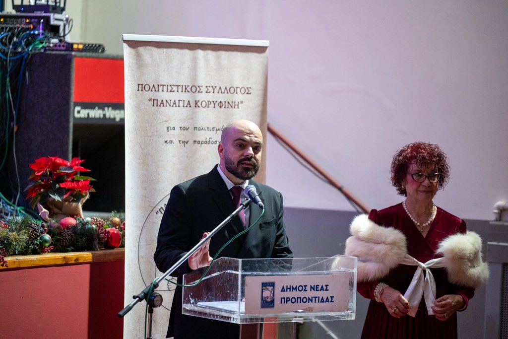 Την αυλαία της εκδήλωσης άνοιξε η Πρόεδρος του Πολιτιστικού Συλλόγου «Παναγία Κορυφινή», κα Ανδρονίκη Καβάση, καλωσορίζοντας το κοινό. Ακολούθως, χαιρετισμό απηύθυνε ο Δήμαρχος Ν. Προποντίδας, κ. Εμμανουήλ Καρράς, υπό την αιγίδα του οποίου τελούσε η βραδιά.