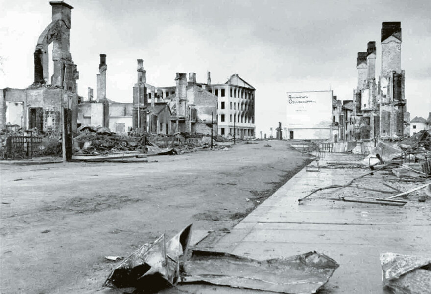 Για να υλοποιηθεί βέβαια το σχέδιο του Άαλτο έπρεπε προηγουμένως η αραιοκατοικημένη αγροτική κωμόπολη των 6.000 κατοίκων της δεκαετίας του ’30 να παραδοθεί αρχικά στους ναζί και κατόπιν σχεδόν να εξαφανιστεί από τον χάρτη.