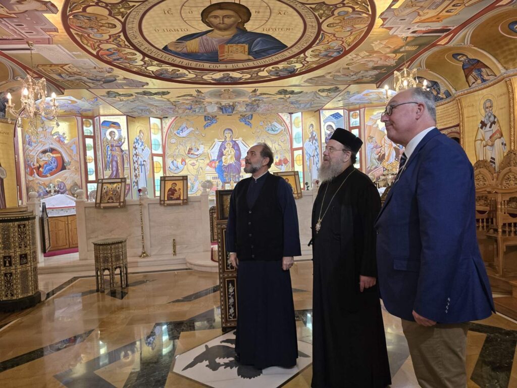 Τον εκλεκτό επισκέπτη συνόδευε ο διδάσκων στην Θεολογική Σχολή Παν. Αρχιμ. π. Δημήτριος Μπίκας, ο οποίος έλκει την καταγωγή του από τον εύανδρο Στανό.