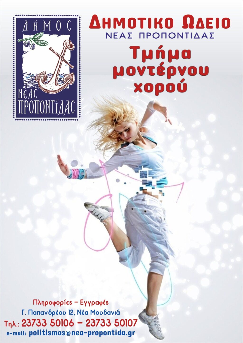 Το Δημοτικό Ωδείο Νέας Προποντίδας ανακοινώνει τη λειτουργία τμημάτων μοντέρνου χορού για τη νέα χρονιά, προσφέροντας σε μικρούς και μεγάλους την ευκαιρία να εκφραστούν δημιουργικά μέσα από την κίνηση και τη μουσική.