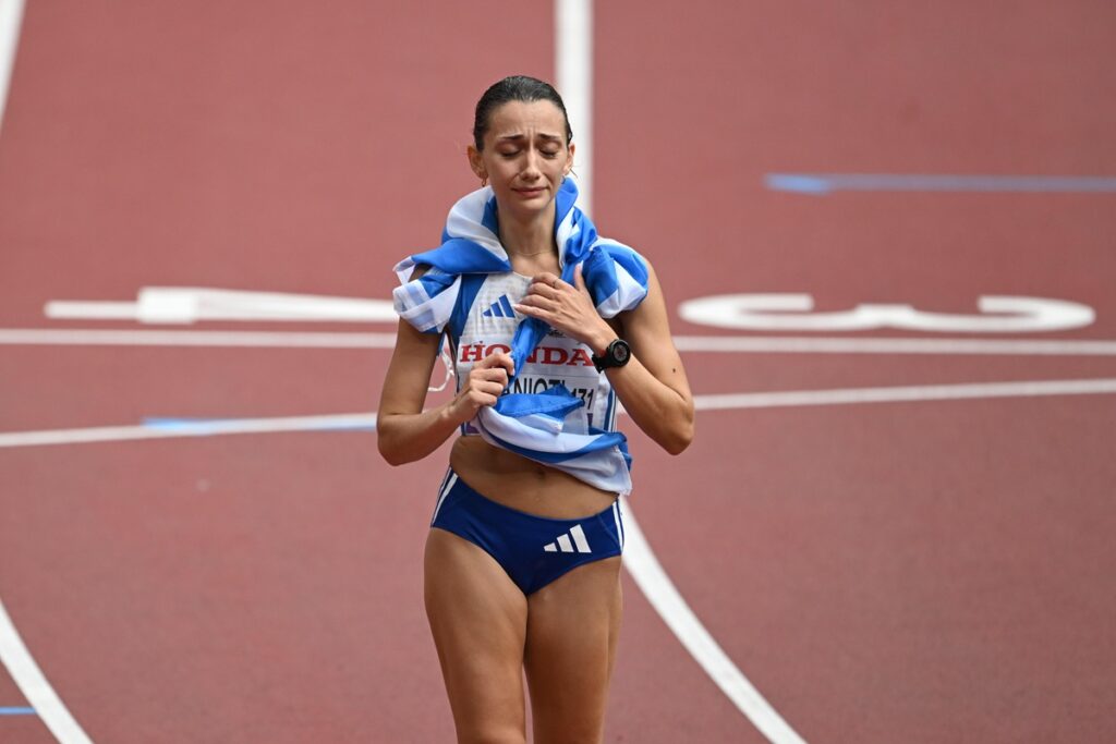 Η 23χρονη αθλήτρια ήταν το πρόσωπο της ελληνικής ομάδας στην έναρξη του 20ου Παγκοσμίου πρωταθλήματος στο Τόκιο, αφού κατέλαβε την 18η θέση στα 35χλμ. βάδην με 2.59.59. Η αθλήτρια βελτίωσε το φετινό της ρεκόρ σε μια κούρσα σωστής κατανομής δυνάμεων, ψυχραιμίας και ισορροπίας από μέρους της. Η αθλήτρια του Γρηγόρη Κοντού επέλεξε στην αρχή να μείνει πίσω, ωστόσο είδε πως έχει δυνάμεις και σταδιακά, δίχως να πάρει μεγάλο ρίσκο, ανέβασε ρυθμό και κέρδισε πολλές θέσεις.