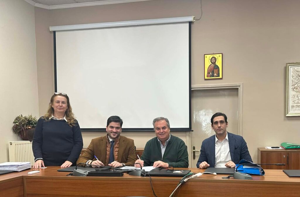 Υπεγράφη η σύμβαση κατασκευής του έργου «Ανέγερση Γενικού Λυκείου Νέων Μουδανιών», ένα έργο κομβικής σημασίας για την εκπαιδευτική υποδομή της περιοχής, από τον Δήμαρχο Νέας Προποντίδας, κ. Μανώλη Καρρά, και τον Διευθύνοντα Σύμβουλο της αναδόχου εταιρείας «Α.Τ.Ε.Σ.Ε. Α.Ε.», κ. Παύλο Σαραντόπουλο, παρουσία του Προέδρου της εταιρείας κ. Παναγιώτη Χουμπαυλή και της επιβλέπουσας μηχανικού του Δήμου κ. Βασιλικής Τσαβλή.